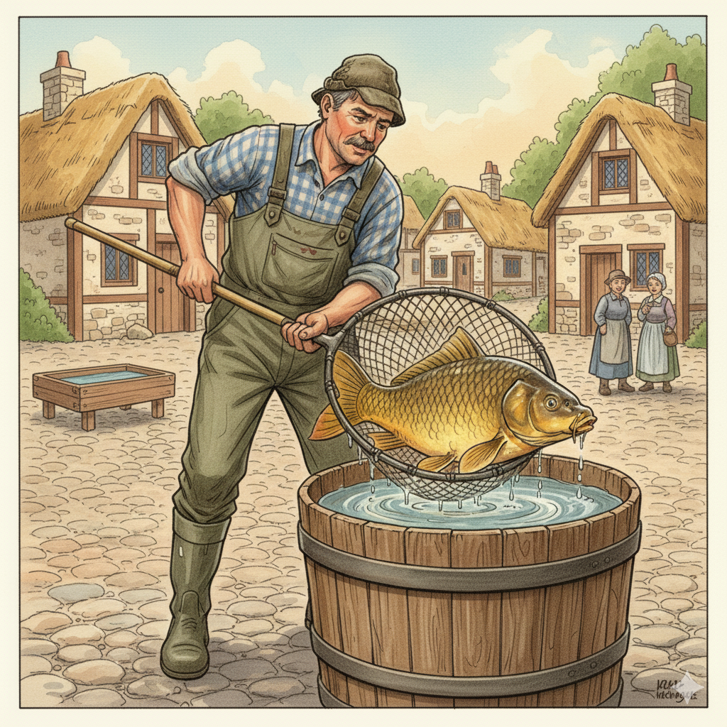 Jiný prodejce bude prodávat ryby od 11:45 do 12:00 u kostela.