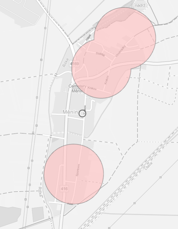 Mapa obsahuje zóny, ve kterých je zakázáno zacházet s pyrotechnickými výrobky s výjimkou kategorie F1 podle § 35b zákona č. 344/2025 Sb., kterým se mění zákon č. 206/2015 Sb., o pyrotechnických výrobcích a zacházení s nimi a o změně některých zákonů (zákon o pyrotechnice), ve znění pozdějších předpisů, a další související zákony.